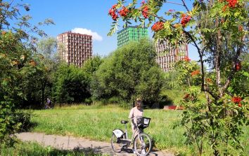 Гостевые б/пл парковки расположены по внешнему периметру домов. Рядом бассейн, ледовый дворец и клуб пляжного спорта "Лето". Парк с прудом, речкой, ботанический сад. Рядом вузы: РАНХИГС, МГИМО, МГУ и пр.