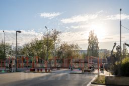 На территории находятся детские и спортивные площадки, места для работы и отдыха, функционирует бизнес-центр.