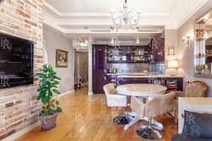 Квартира полностью меблирована, кухонный гарнитур укомплектован всей необходимой бытовой техникой, в санузлах установлена качественная сантехника.