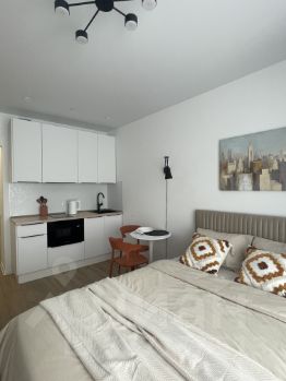 В квартире выполнена меблировка по дизайнерскому проекту в скандинавском стиле. Получилась очень уютная, светлая, просторная и максимально практичная квартира для комфортного длительного проживания.