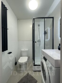 Санузел: оборудован душевой кабинкой, большим зеркалом с подсветкой, стиральной машинкой, полотенцесушителем.