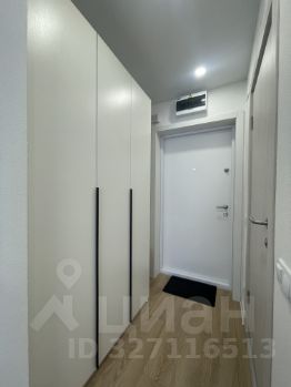 Прихожая: большой шкаф для одежды, зеркало, пуф.