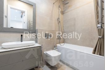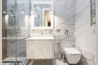 - Два совмещенных санузла: Санузел с душевой кабиной и Санузел с ванной. Отделка из керамогранита. Качественная сантехника. Подвесные унитазы, гигиенические души, подвесные тумбы с раковинами, зеркала с подсветками.