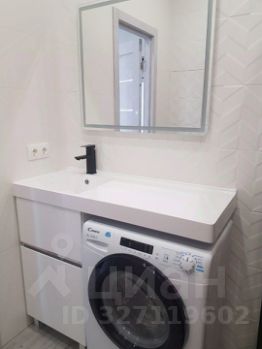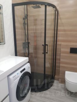 Санузел: совмещенный, с современной душевой кабиной. Стиральная машина встроена под столешницу, что экономит пространство и выглядит эстетично.