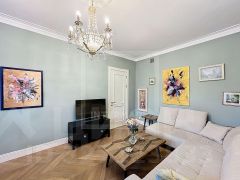 ID 33233: Предлагается в аренду изысканная 2-комнатная квартира в легендарном сталинском доме на Комсомольском проспекте в самом сердце элитных Хамовников. Это не просто жильё — это воплощение утончённой столичной жизни, где каждая деталь продумана до мелочей для вашего максимального комфорта. Идеальная планировка, гармонично сочетающая функциональность и уют: отдельная спальня, стильная кухня и просторная гостиная. Авторский ремонт выполнен в благородном стиле современной классики с использованием высококачественных материалов и спокойных, гармоничных оттенков, создающих атмосферу безмятежности и элегантности. Квартира полностью укомплектована качественной мебелью и современной техникой, проведён высокоскоростной интернет. Особую величественность помещению придают трёхметровые потолки, которые наполняют пространство воздухом и визуально увеличивают пространство. Безопасность проживания обеспечивается комплексной системой: благоустроенный внутренний двор находится под круглосуточным видеонаблюдением, действует профессиональная охрана, а для автовладельцев предусмотрена закрытая парковка с закреплёнными машино-местами. Расположение квартиры открывает потрясающий доступ к развитой инфраструктуре района. В пешей доступности находятся живописная Фрунзенская набережная и легендарный спортивный комплекс "Лужники", уютные скверы и прогулочные зоны идеально подходят для утренних пробежек и вечерних прогулок. Поблизости расположены престижный Усачевский рынок, изысканные рестораны, модные кафе, современные фитнес-центры и салоны красоты. Транспортная доступность впечатляет: три станции метро находятся в пешей доступности, а всего за 7 минут на автомобиле можно добраться до самого сердца столицы — Кремля.