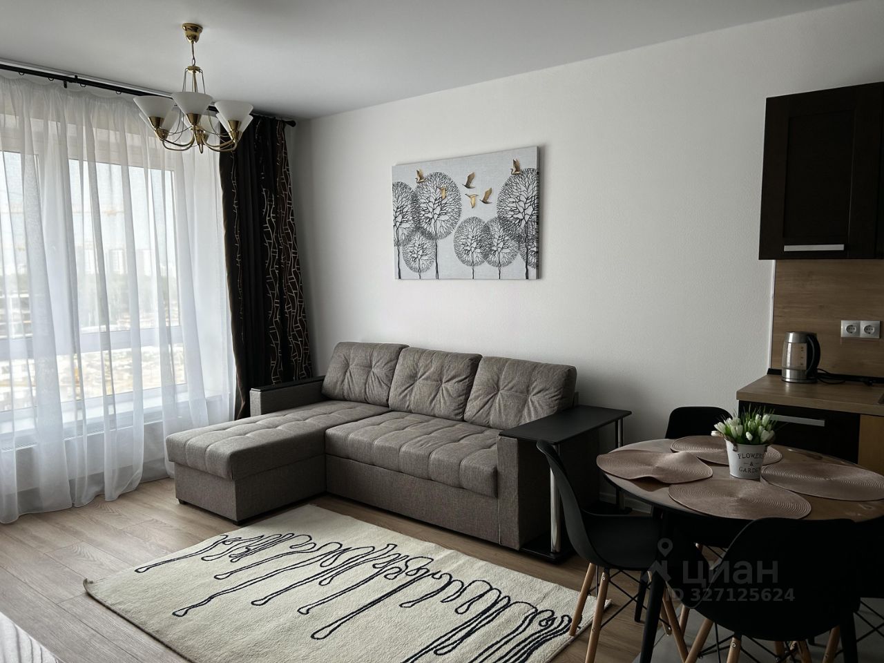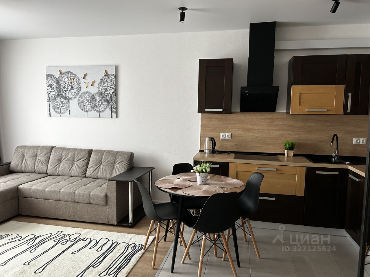 Квартира полностью меблирована: встроенная кухня, холодильник, вытяжка, варочная панель, микроволновка, чайник, посуда, телевизор Яндекс Алиса, кондиционер, проведен WiFi роутер.