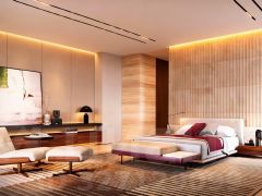 продуманная цветовая гамма и текстуры, создающие атмосферу уюта и статуса;