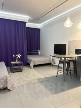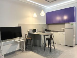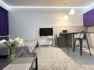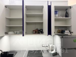 Студия оборудована всем необходимым для комфортного проживания - кондиционер (обогрев и охлаждение)/ холодильник/ варочная электрическая плита 3 конфорки/ микроволновая печь/ посудомоечная машина/ стиральная машина/ холодильник/ электрический чайник/ кровать 200х140/ раскладной диван со спальным местом 200х140см/ рабочий стол/ телевизор 43* с Алисой/ 2 настенные сушилки для белья/ утюг и гладильная доска/ пылесос/ много мест хранения.