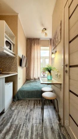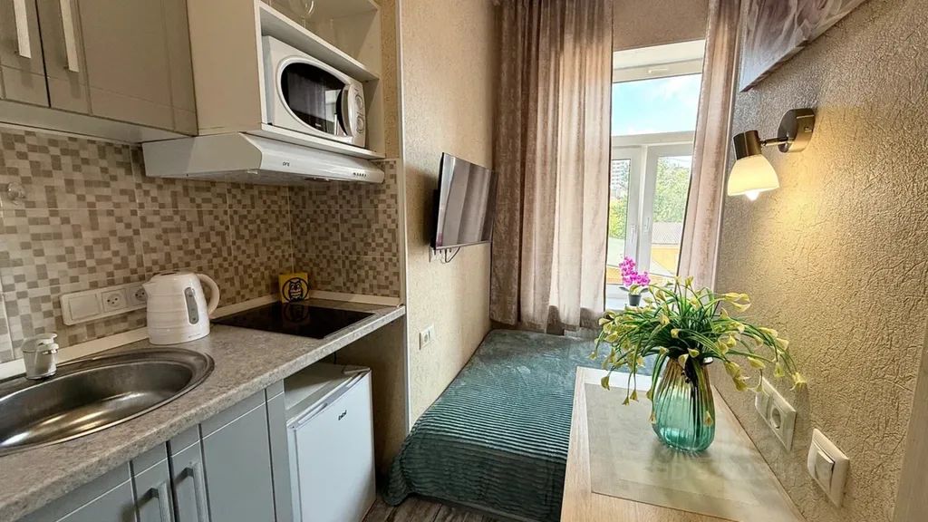 Студия полностью оборудована для комфортного проживания: телевизор, бесплатный wi-fi, стиральная машина, утюг, фен, варочная панель, чайник и микроволновка. Есть штопор и бокалы. Регулярная уборка профессиональной химией и дезинфекция от насекомых, а также смена белья на чистое и свежее проводятся перед каждым заездом.