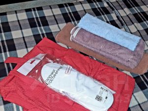 Есть чистый халат с капюшоном, раз/тапочки, раз/покрытия для унитаза, отдельный холодильник. Всегда есть жид/мыло, туалет/бумага.