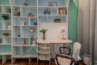 Во второй спальной комнате также установлена большая кровать, шкаф-купе, стеллаж для хранения и письменный стол, что делает это пространство идеальным как для сна, так и для работы или учебы.
