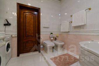 Просторная мастер-спальня оформлена в тёплых, благородных тонах и оборудована огромной кроватью, элегантным комодом, большим телевизором и вместительным шкафом-купе. Атмосфера комнаты располагает к отдыху и покою.