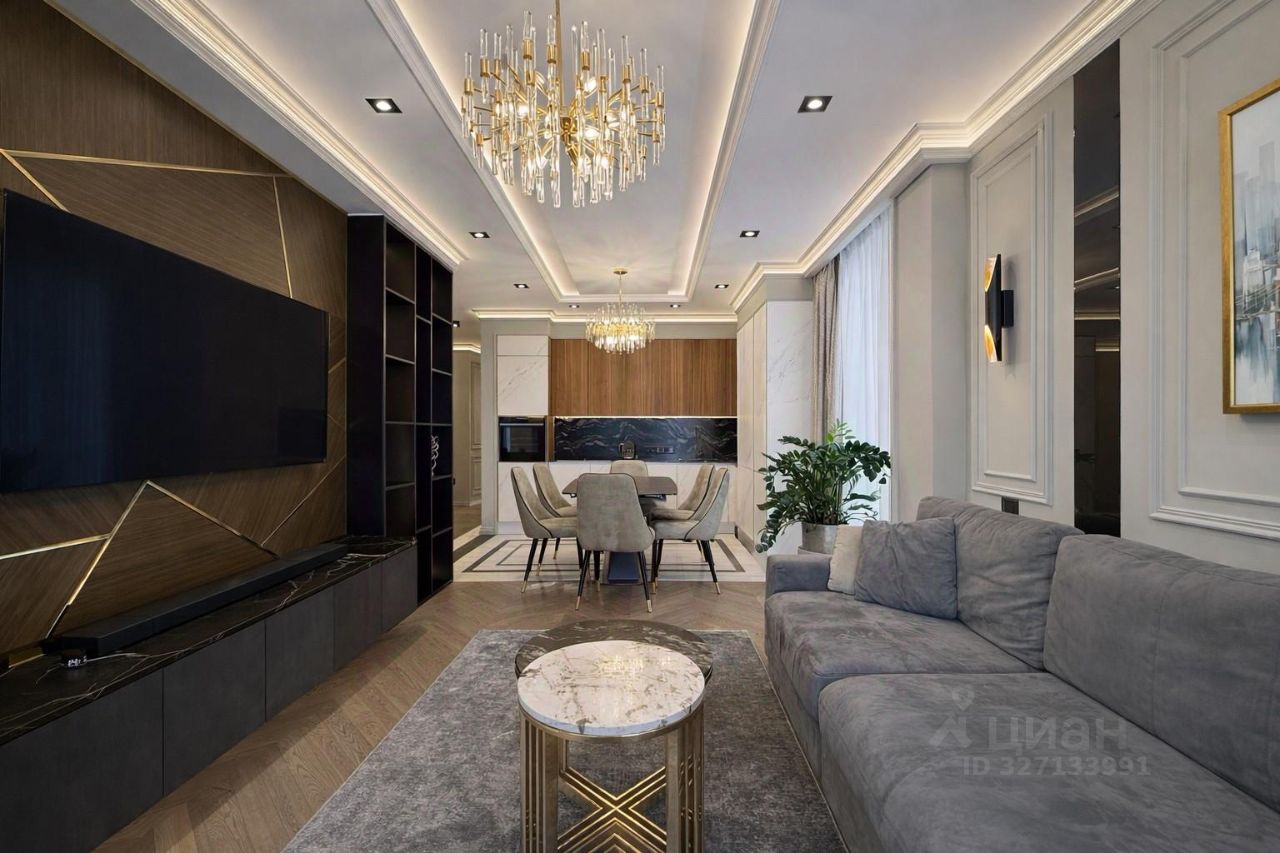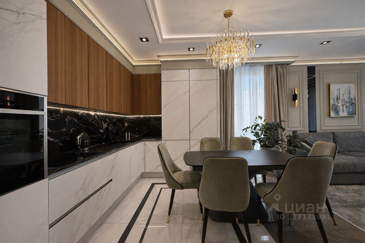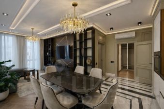 Сдаётся светлая 4-комнатная квартира 120 м² с профессиональным дизайнерским ремонтом в ЖК Хорошёвский, 3-я Хорошёвская ул., 25к1. Планировка идеально подойдёт семье: три изолированные спальни, кухня-гостиная 20 м², два санузла, две гардеробные и продуманная система хранения по всей квартире. Окна выходят и во двор, и на улицу, за счёт чего в квартире много естественного света в течение дня.