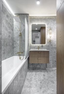 В квартире есть всё необходимое для комфортного проживания: современная мебель в комнатах, встроенное кондиционирование и вентиляция, холодильник, посудомоечная и стиральная и сушильная машины премиальных брендов. Санузлы в квартире два: один совмещённый и один отдельный, в ванной комнате установлена ванна. В одной из спален установлен только шкаф, покупка мебели под арендатора.