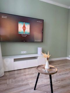 Квартира расположена на 7 этаже, дом построен в 2020 году. В квартире выполнен евро ремонт, комнаты смежные, есть все для комфортного проживания. Кухня оснащена современной техникой: Холодильник значительно больше стандартных моделей No Frost , микроволновая печь, индукционна варочная поверхность, духовой шкаф AEG, посудомойка Bosch, чайник, установлена система питьевой воды, встроен очень вместительный кухонный гарнитур. В смежной гостиной с кухней установлен кондиционер и телевизор Samsung 75 диагональ, диван на два спальных места.