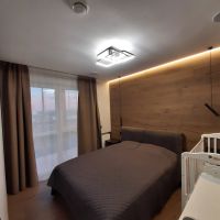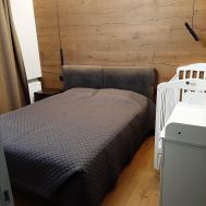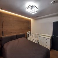 Спальные места: одна двуспальная кровать 160х200. Две раздельные подростковые кровати 90х190 и 90х200. Детская кроватка с маятником. Огромный угловой диван раскладной с двуспальным местом. Вместительная гардеробная. Два сан узла.