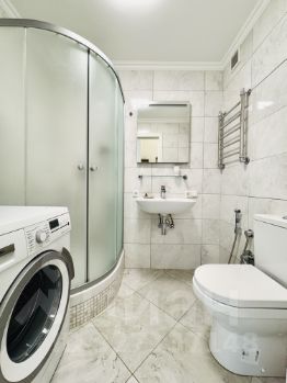 Санузел совмещенный, оборудован душевой кабиной, качественная сантехника.