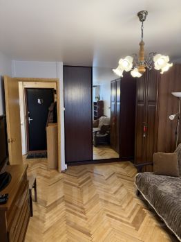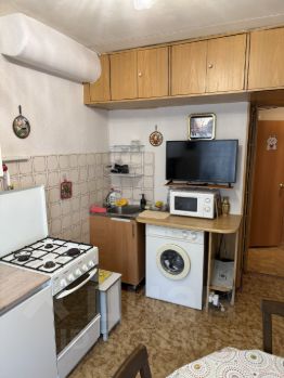 В квартире выполнен хороший косметический ремонт, в комнате сделана большая гардеробная, для хранения вещей. Квартира полностью готова для комфортного проживания. В наличии вся необходимая мебель и техника: диван, кухонный стол, стулья, холодильник, микроволновая печь, электрический чайник, тостер, газовая плита, капсульная кофе машина, стиральная машина, два телевизора, гладильная доска. Санузел совмещенный.