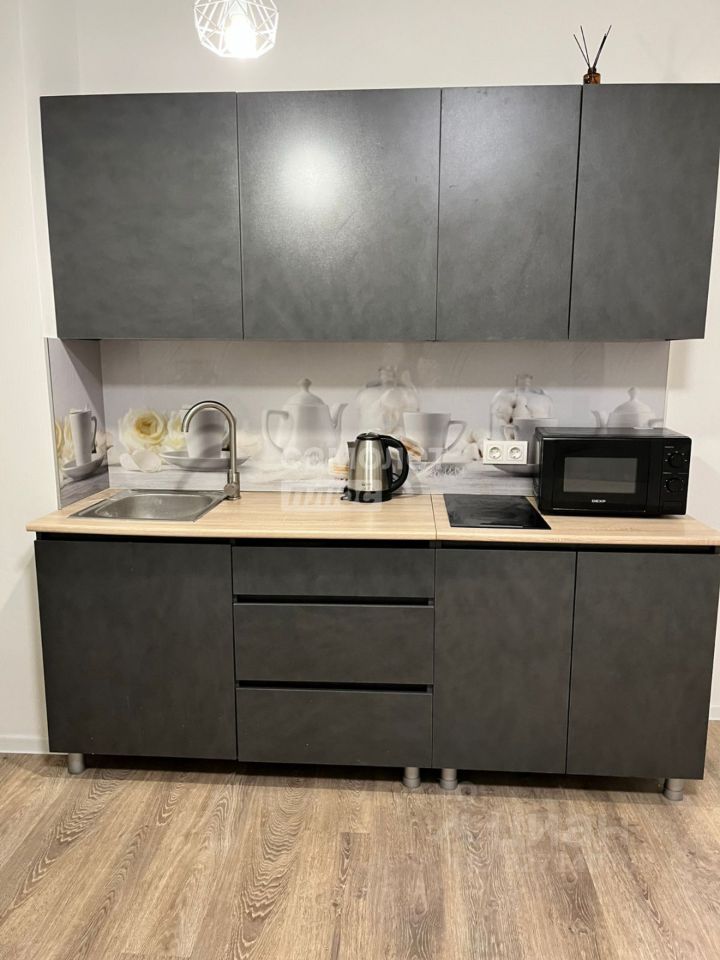 В квартире хороший ремонт, вся мебель для комфортного проживания имеется (кухня, плита электрическая, микроволновка, кровать, обеденная группа - стол и стулья), вешалка для одежды, вместительный шкаф для одежды, холодильник, стиральная машина).