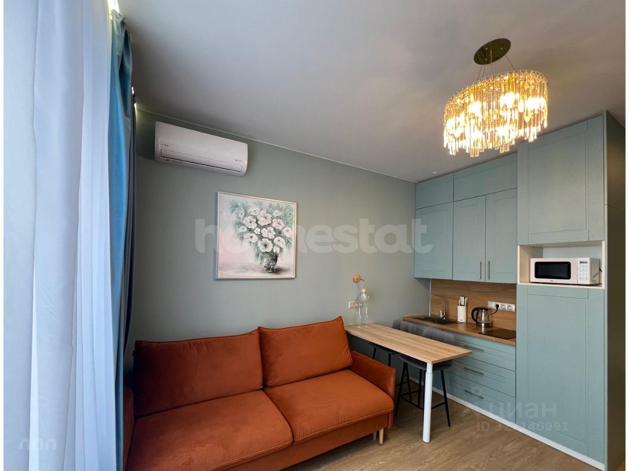 Квартира с дизайнерским ремонтом, оборудована всем необходимым для комфортного проживания. Встроенная мебель на кухне и в комнате, кондиционер, холодильник, посудомоечная и стиральная машины, а также телевизор. Ванная комната оснащена современной душевой кабиной. Студия готова к заселению и не требует дополнительных вложений.