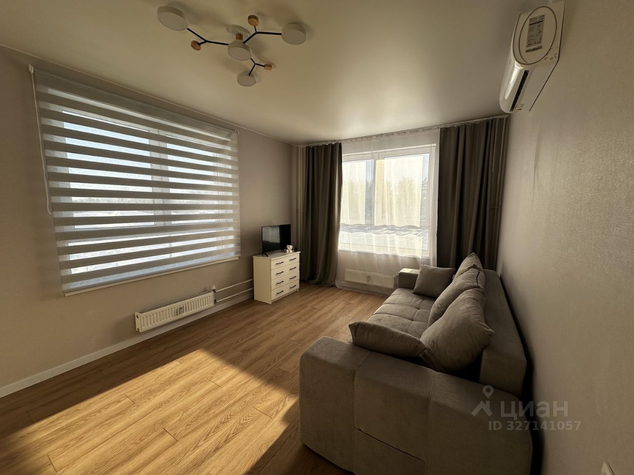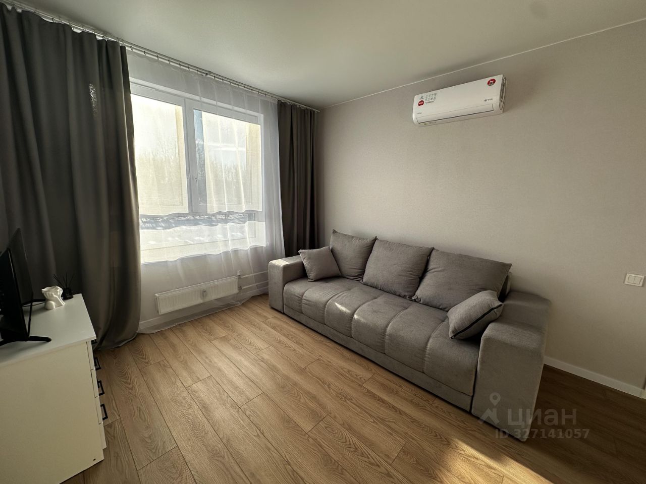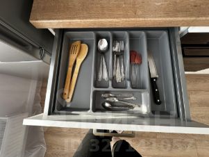 В квартире есть все необходимое для комфортного проживания: косметический ремонт, мебель на кухне и в комнате, а также современная техника — кондиционер, холодильник, посудомоечная машина, телевизор и стиральная машина. Планировка включает две отдельные комнаты и совмещенный санузел с ванной.