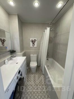 В квартире есть всё необходимое для комфортного проживания: современная мебель в комнатах и на кухне, а также полный набор бытовой техники — кондиционер, холодильник, посудомоечная и стиральная машины. Ванная комната оборудована ванной. Совмещённый санузел выполнен в современном стиле.