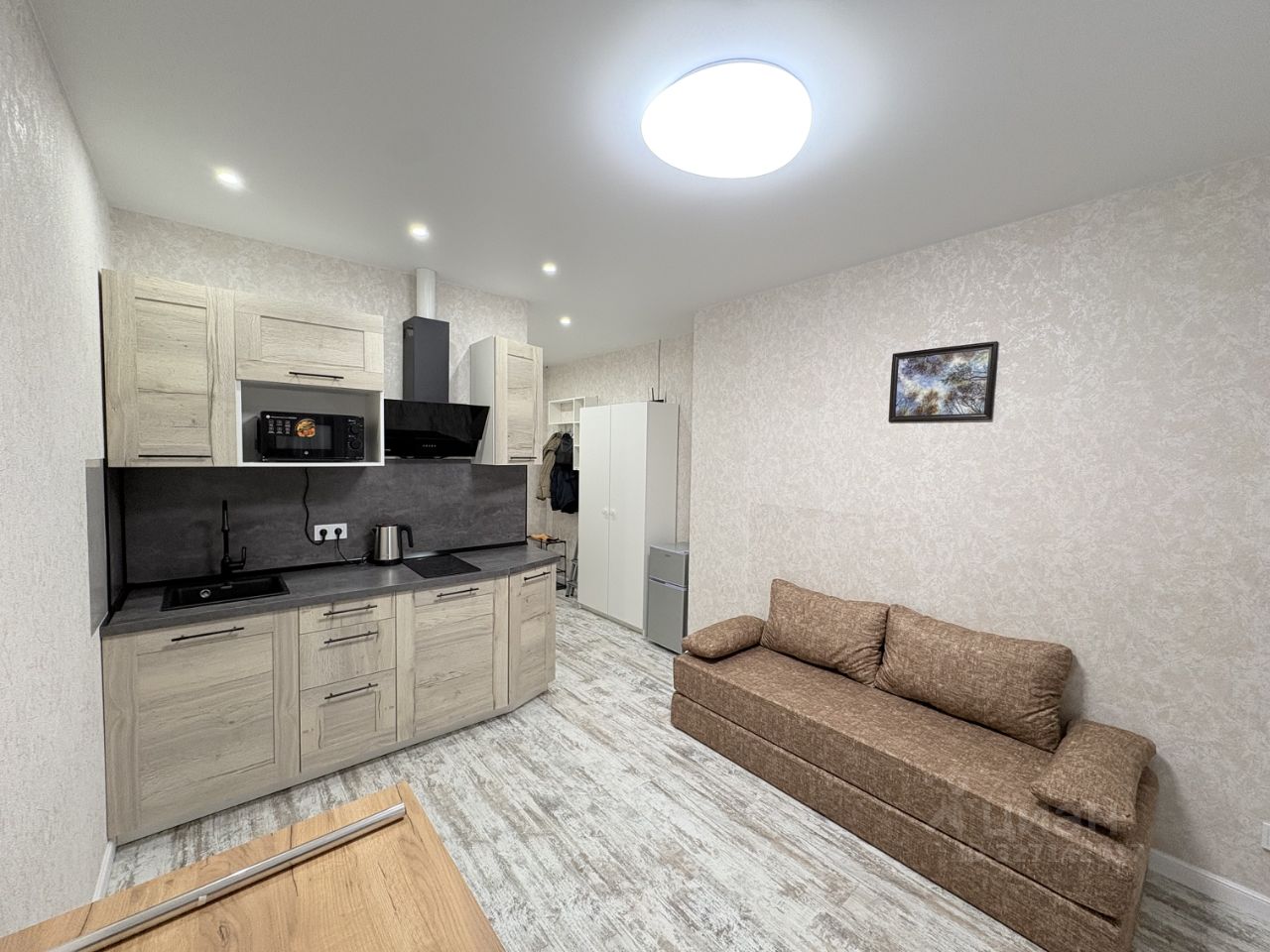 Сдаётся впервые студия с дизайнерским ремонтом в монолитном доме 2025 года постройки. Жилой комплекс расположен в пешей доступности от метро Прокшино. Рядом развитая инфраструктура, есть прогулочная зона с прудом. До центра Москвы 35мин на метро. В квартире предусмотрены все удобства для комфортного проживания. кухня оборудована современной техникой, включая холодильник и микроволновую печь. В гостиной зоне установлен удобный диван и шкаф для хранения вещей.