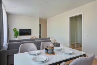Доступна к просмотру и бронированию! Сдается в долгосрочную аренду просторная 3-комнатная квартира в арендном доме "Октябрьское Поле. Юг" от ДОМ.РФ. Доступна рассрочка оплаты депозита на 3 месяца! Без комиссии. Разрешено проживание с животными! Много света и открытого пространства! Квартира в современном стиле, с качественной отделкой, мебелью и техникой: - Посудомоечная и стиральная машины; - Встраиваемая бытовая техника; - Электрическая варочная панель; - Духовой шкаф; - Кондиционер; - Плазменный телевизор c функцией Smart-TV В квартире размещён полный комплект необходимой мебели: - современный кухонный гарнитур; - обеденный стол и стулья на 4 персоны; - 4 спальных места: двуспальная кровать в спальне и двуспальный раскладной диван в гостиной; - 3 шкафа; - письменный стол и стул в детской/кабинете; - настенная вешалка в прихожей и обувница; В квартире санузел с ванной и гостевой санузел.