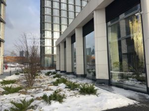На первых этажах комплекса находятся магазины, кафе, рестораны и сервисные службы, а также коворкинг, фитнес-зал, супермаркет.