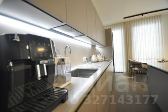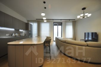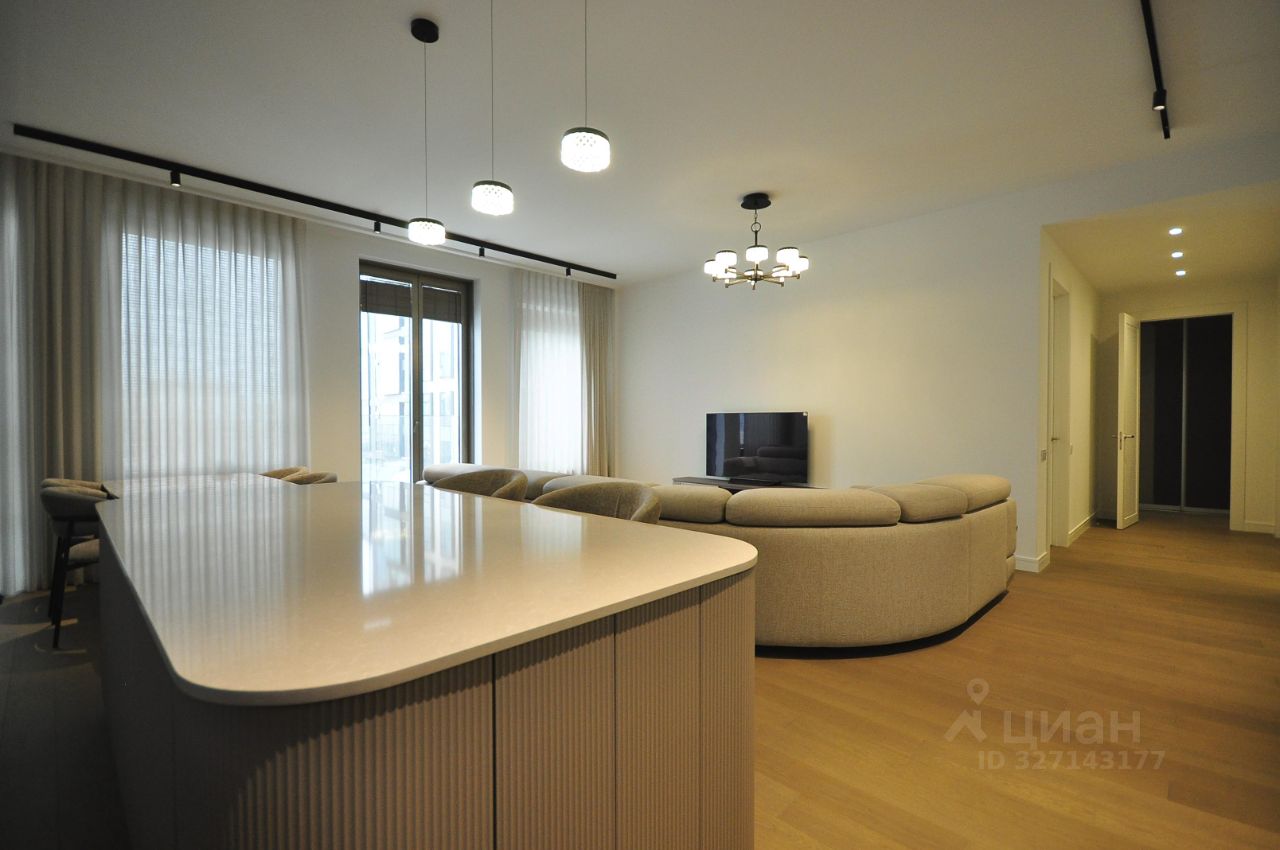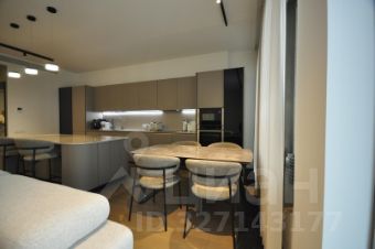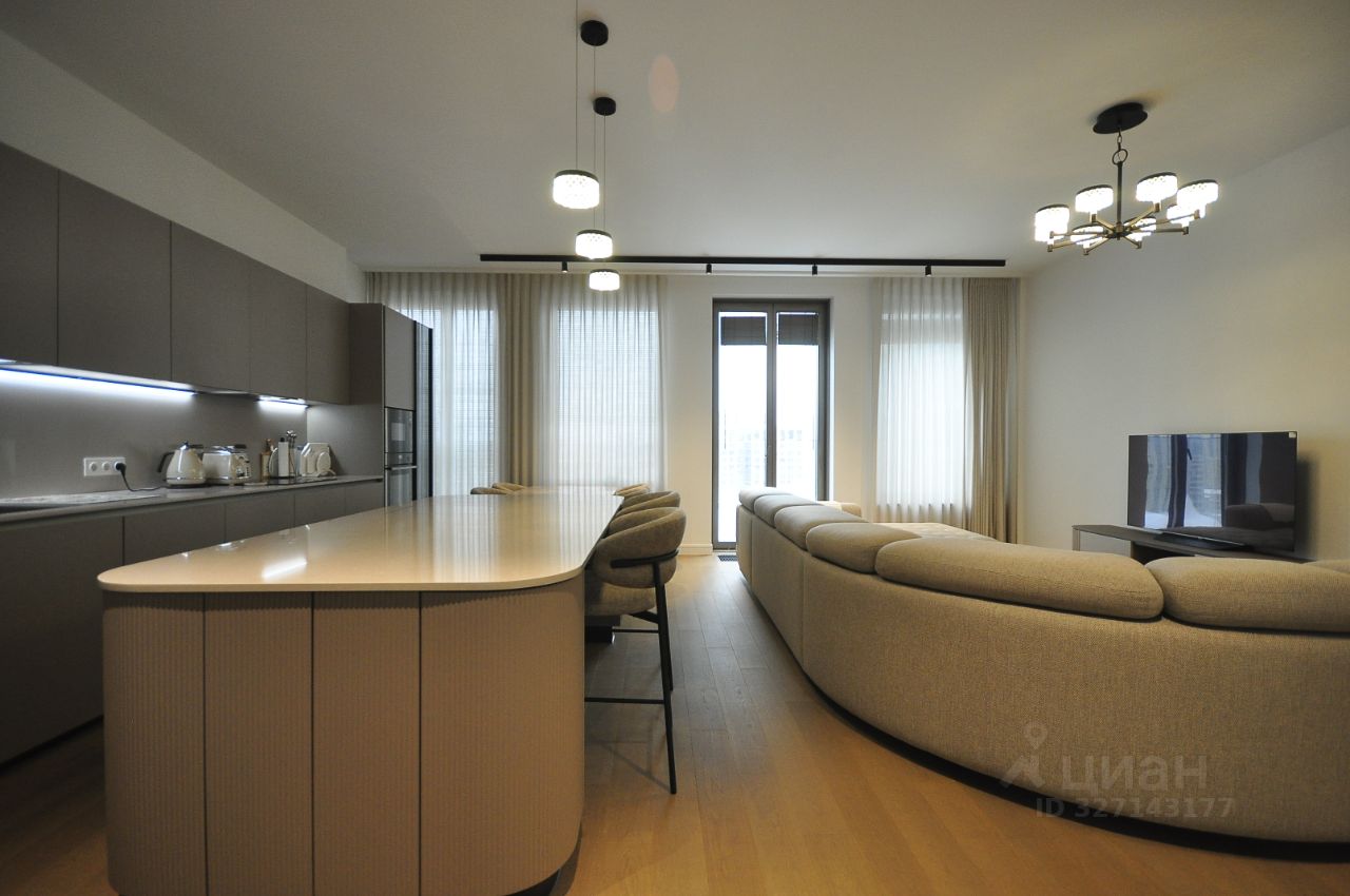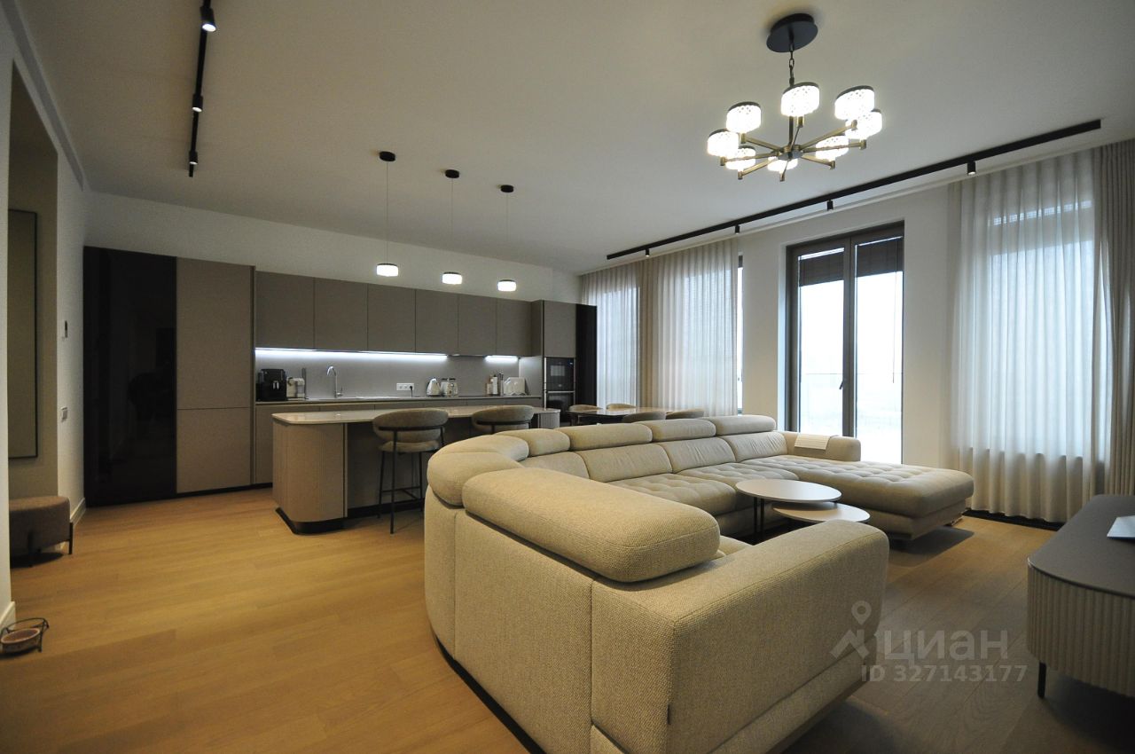 Квартира с 2 спальнями и двумя балконами общей площадью 119 м², выполнен дизайнерский ремонт в светлых тонах, полностью укомплектована необходимой техникой и мебелью. До этого никто не жил. Планировка: сразу возле входа в квартиру гостевой санузел и гардеробная комната для верхней одежды, кухня-гостиная общей площадью 45 м2, холл ведет мимо гостевой (детской) комнаты в мастер-спальню с собственной гардеробной зоной и санузлом с душем, также имеется еще один санузел с ванной и постирочная со стиральной и сушильной машинками. Дизайн интерьера от итальянской студии Molteni Group. Санузлы облицованы керамогранитом и плиткой "Терраццо",теплые полы с системой от протечек, в отделке использованы премиальные европейские бренды - Villeroy & Boch, Gessi. Полностью оборудованная кухня итальянского бренда DADA укомплектована европейской премиальной бытовой техникой NEFF . Интерьер выполнен по авторскому проекту. В отделке использованы только качественные натуральные материалы лучших производителей в соответствующей палитре, пол - паркетная доска из тонированного дуба.