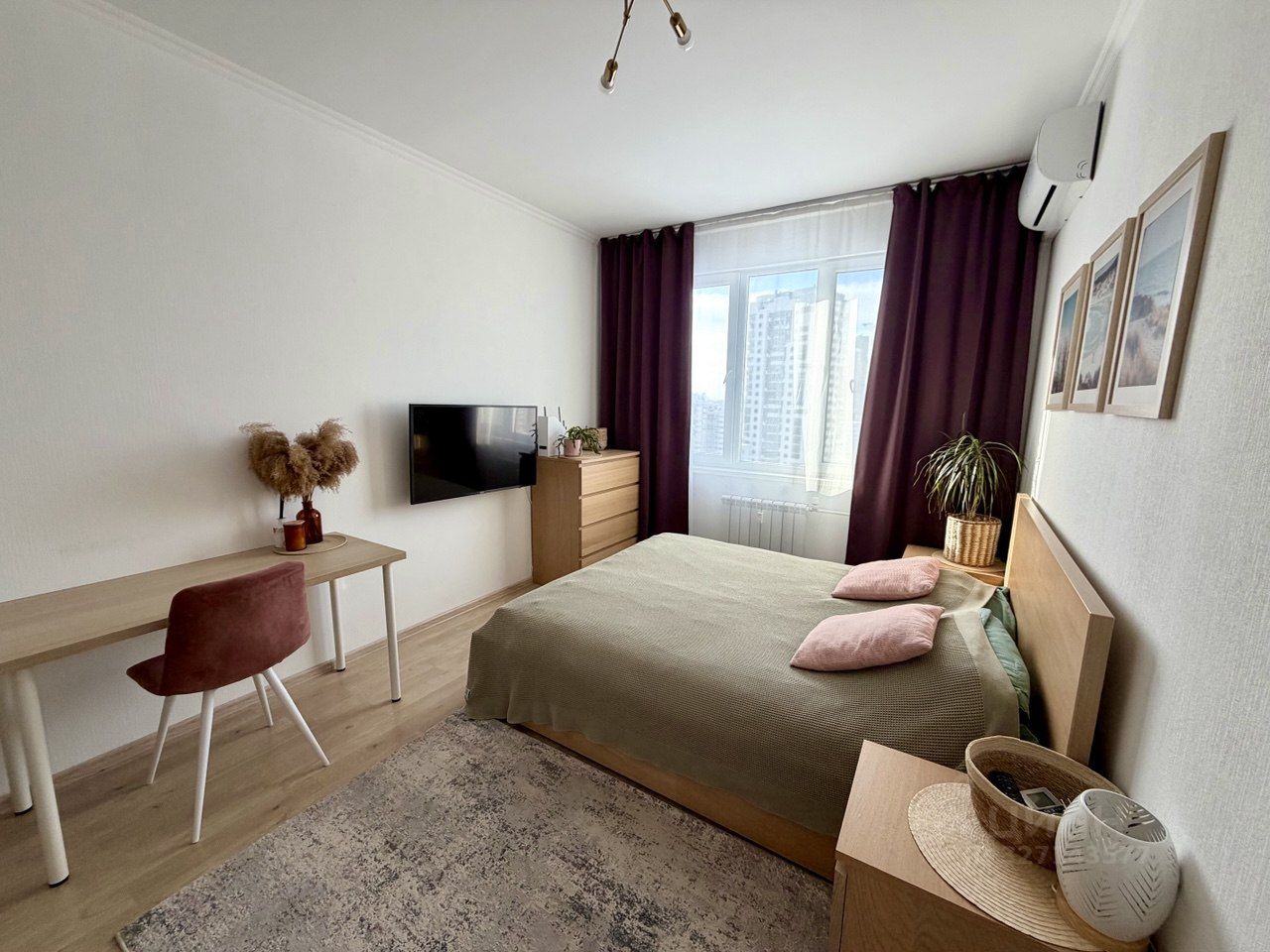 Квартира полностью меблирована и укомплектована качественной техникой: полноценная кровать 160*200, кондиционер, стиральная и сушильная машины . Просторная кухня с индукционной плитой электролюкс, духовой шкаф и посудомойка Бош.