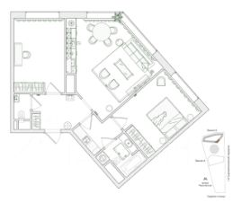 Функциональная планировка: просторная кухня-гостиная и две изолированные комнаты. Апартаменты солнечные, в спальнях установлены рулонные шторы blackout.