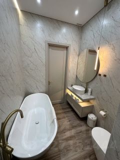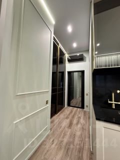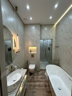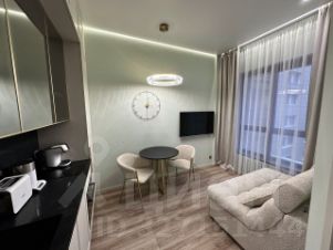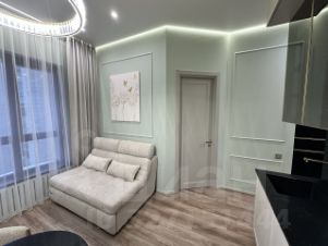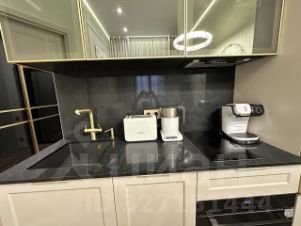 Евродвушка (гостиная-кухня + спальня, санузел с ванной и душевой, гардеробная) расположена в новом премиальном жилом комплексе Резиденции Замоскворечье в историческом центре Москвы.