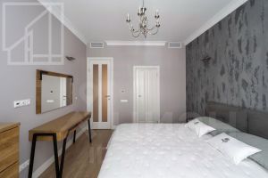 Планировка: гостиная с обеденной зоной, переходящая в кухню, две спальни с гардеробными (в одной из них выход на балкон), еще гардеробная, полноценный с/у с душевой кабиной с гидромассажем, гостевой с/у. Квартира полностью меблирована и укомплектована всей необходимой для жизни бытовой техникой, большое количество мест для хранения. Центральная система вентиляции и кондиционирования с фильтрацией и притоком свежего воздуха, подогрев полов, кабельное ТВ, высокоскоростной интернет.