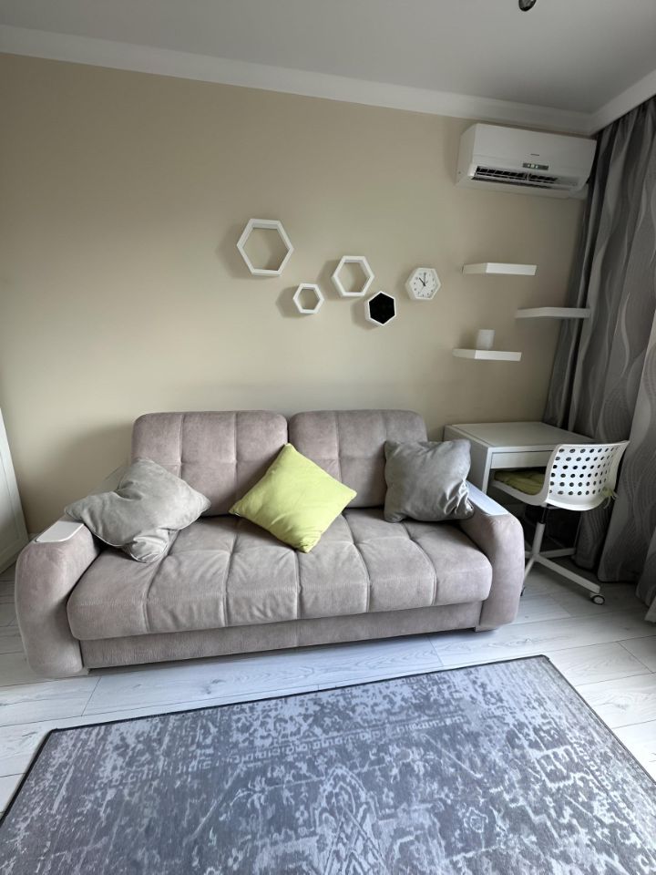 В квартире есть всё необходимое для комфортного проживания: современная мебель на кухне и в комнате, а также полный комплект бытовой техники — кондиционер, холодильник, посудомоечная и стиральная машины, телевизоры (все smart tv). Санузел совмещённый, оборудован ванной.