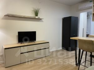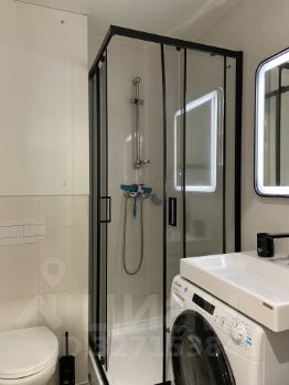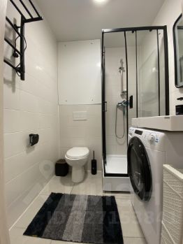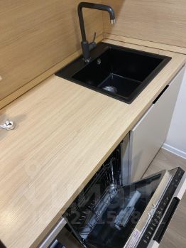 Интерьер студии выполнен в современном стиле, с удобной и функциональной мебелью. Кухня площадью 5 кв. м оснащена всей необходимой техникой: холодильником, посудомоечной машиной и стиральной машиной. В комнате также установлен кондиционер и телевизор. В ванной комнате оборудована душевая кабина, что добавляет комфорта в повседневную жизнь.