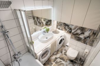 Bosch, фильтр питьевой воды (забудьте о кулерах!), сушильный барабан с эффектом глажки — никаких торчащих утюгов. Термопот, чтобы утром сразу было тепло.