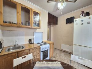 * Кухня - наборный гарнитур с техникой (двухкамерный холодильник, электрическая плита) и обеденной зоной (раскладной стол, 2 стула), ЖК-телевизор.