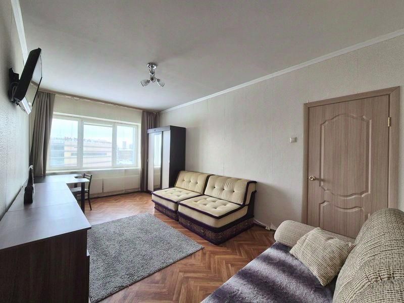 * Комната = 17 кв.м. (правильной формы, с большим окном), укомплектована мебелью: мягкий двуспальный диван, журнальный стол, комод, тумба = 3 шт, ЖК-телевизор. Есть возможность разместить свою мебель;