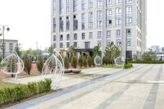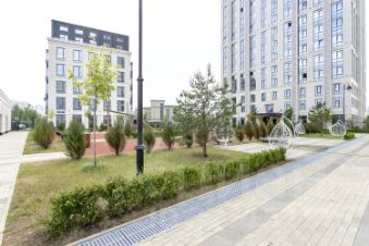 На внутренней закрытой территории расположен детский сад и начальная школа.