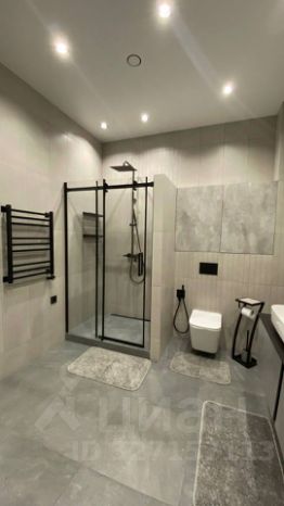 В санузле установлена душевая кабинета, санитарный душ, раковина и зеркало с подсветкой, установлена стиральная машина.