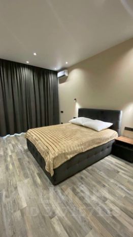 В спальной комнате оборудована большая гардеробная, в самой спальной комнате широкая кровать с ортопедическим матрацем, прикроватными тумбами, кондиционером.