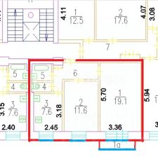 Ул. Васильевская, д. 9, 7/9 этажного кирпичного дома 1959 года постройки, общая площадь 57 кв.м., жилая 30,7 кв.м., комнаты изолированы 19,1-11,6 кв.м., кухня 8 кв.м., санузел совмещен, просторный коридор, балкон остеклен, окна выходят во двор, квартира светлая, просторная, теплая.