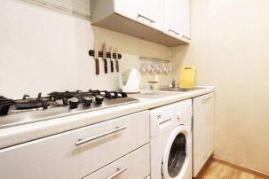 Все необходимое уже есть в квартире (диван, оборудованная кухня, посуда, все для приготовления еды, чай, сахар, телевизор, ванна/душ, полотенца, тапочки, фен, утюг).