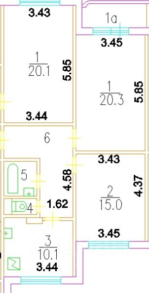 Изолированные комнаты 20 м² и 15 м²