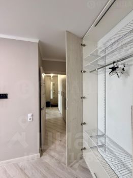 большое количество мест для хранения (вдоль всей стены квартиры огромный встроенный шкаф с гардеробной системой)