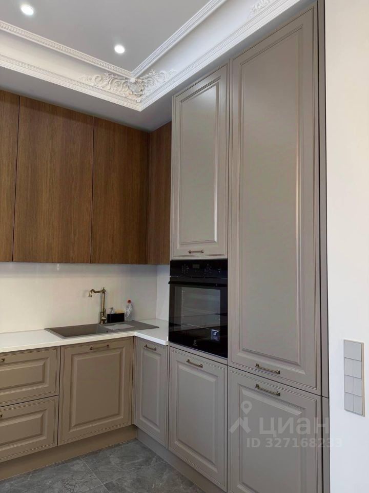 Выполнен в стиле современной классики/ quiet luxury — светлый, спокойный и эстетически приятный.