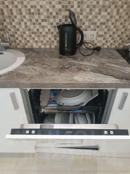 Квартира полностью готова к проживанию: выполнен качественный евроремонт, все комнаты меблированы. На кухне есть вся необходимая техника — холодильник, посудомоечная машина, а также кондиционер для комфортного проживания в жаркие дни. В комнате есть телевизор и стиральная машина. Санузел совмещенный, с ванной. Жилье идеально подойдет для тех, кто ценит комфорт и удобство в быту.