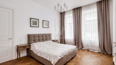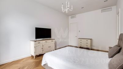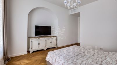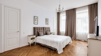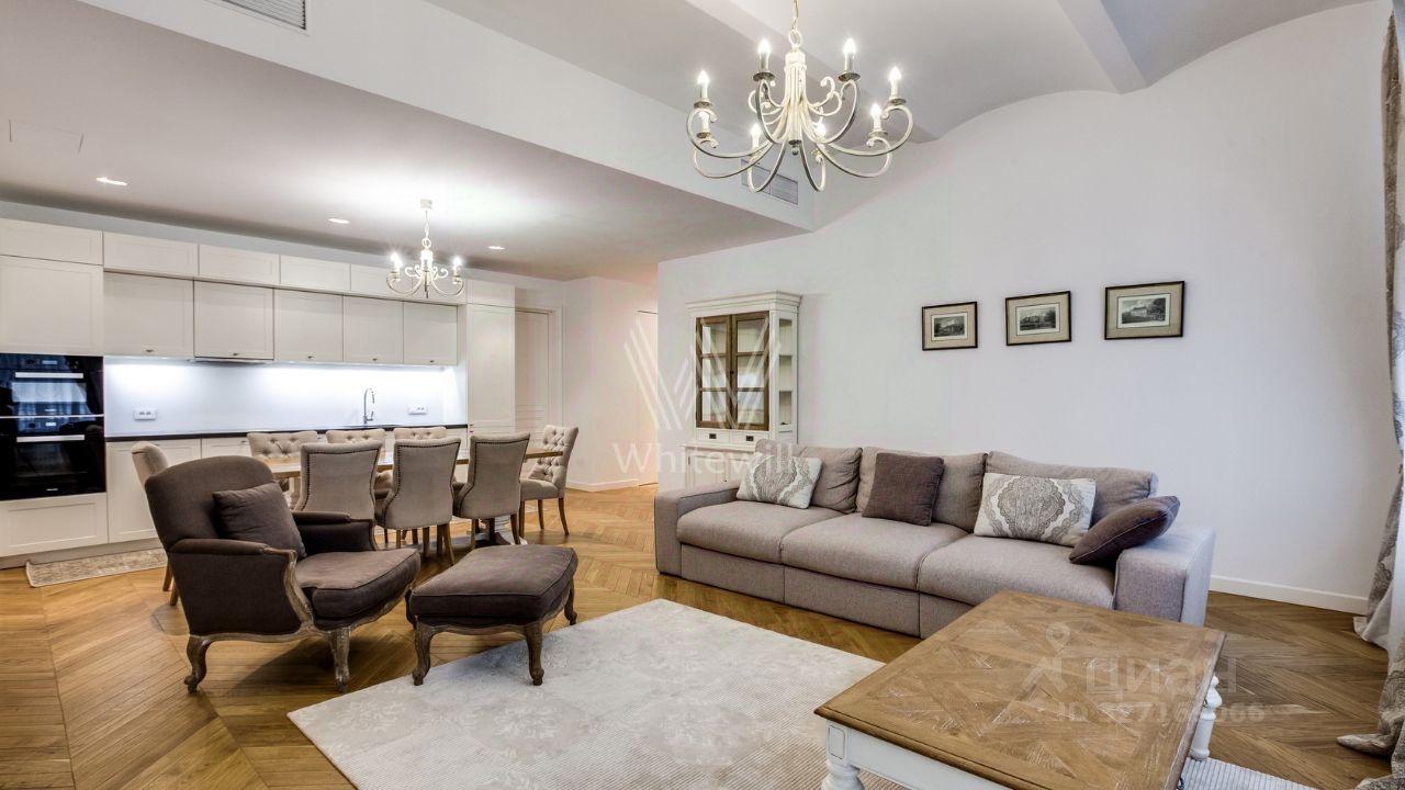 Бонус партнёрам 50%. Апартаменты с 2-мя спальнями общей площадью 122 м² в клубном доме St. Nickolas на Лубянке. Выполнен дизайнерский ремонт в стиле современной классики. В отделке использовано натуральное дерево, на полу выложена паркетная доска. Интерьер оформлен в приятных светло-бежевых тонах, высокие потолки украшены подвесными люстрами с лампами-свечами.