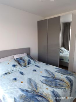 Кухня-гостиная и отдельная спальня. Квартира в отличном состоянии! Общая площадь 35,2кв.м. Есть вся необходимая современная мебель и бытовая техника. Двуспальная кровать, диван, шкафы для одежды. Холодильник, варочная панель, духовка микроволновая печь, чайник, телевизор, стиральная машина, пылесос, кондиционер. Есть сушилка для белья, набор посуды: кастрюля, сковорода, набор столовых приборов, тарелки.